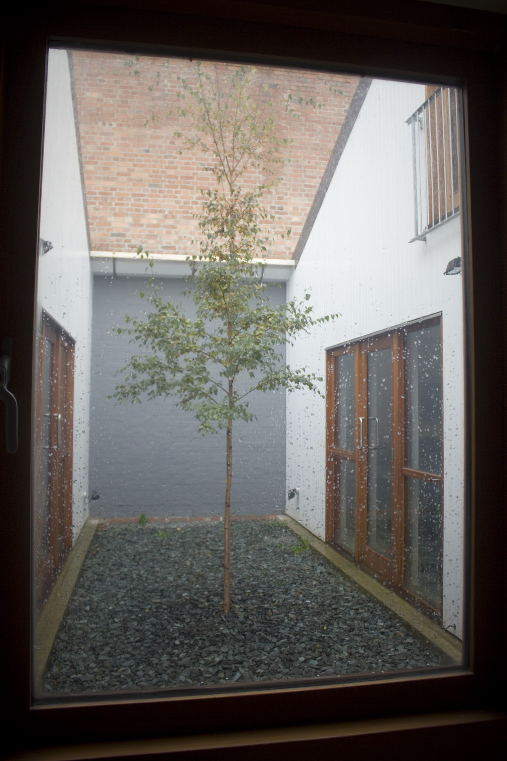 The studios nestle around a private courtyard in a converted warehouse. The common area has a shower and space to secure bicycles.